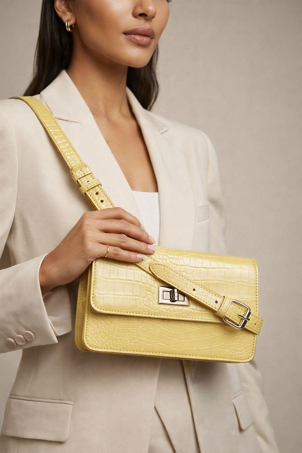 These bags are usually made from durable materials like leather or faux leather, with minimal patterns or logos to keep the look timeless. The hardware (zippers, clasps, chains) is subtle, often in classic tones like gold or silver.