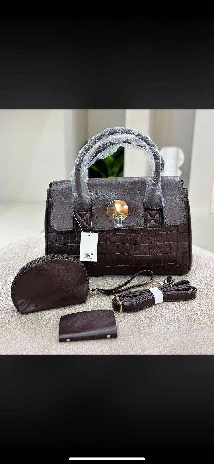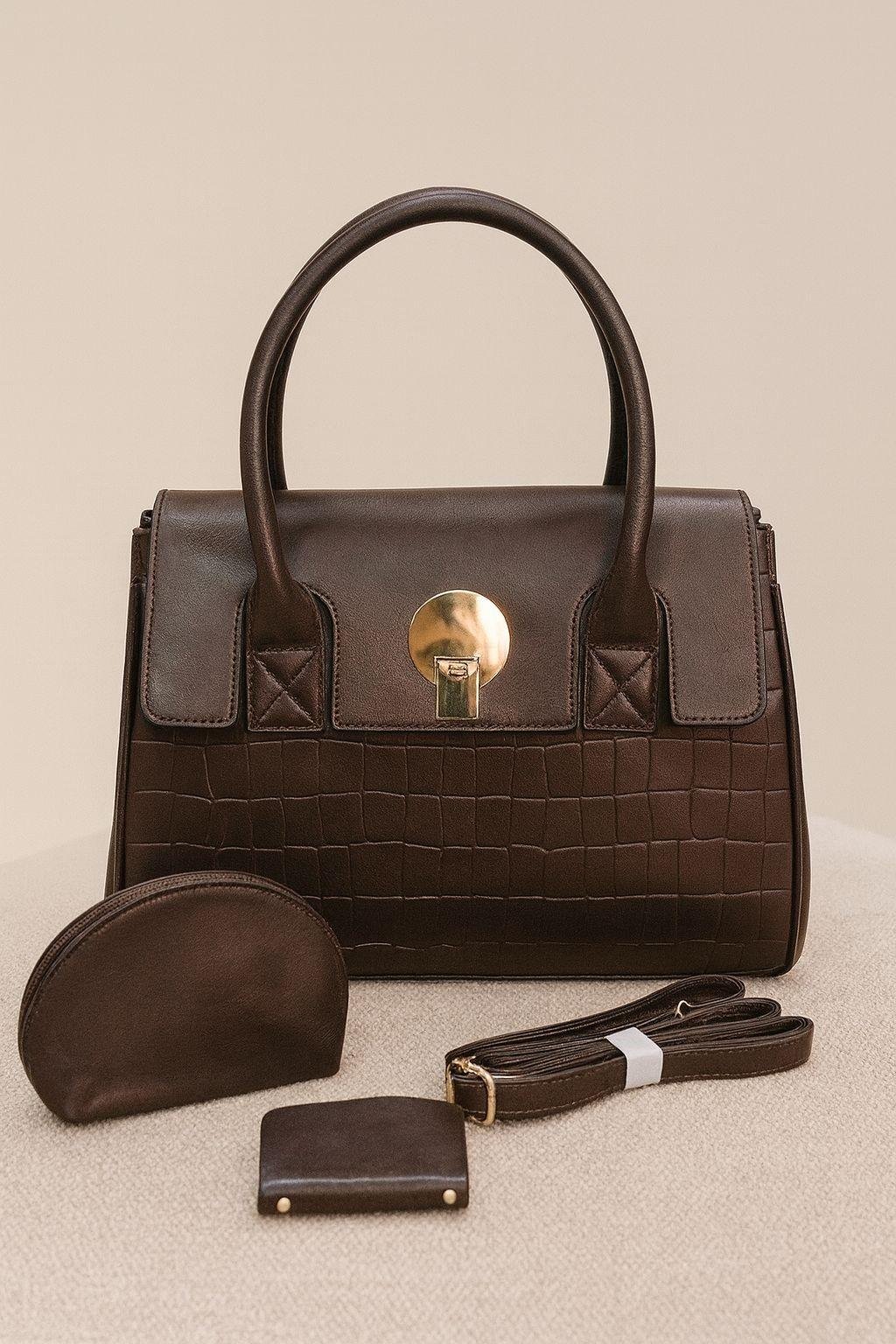 A medium-sized, structured handbag with a boxy, rectangular silhouette