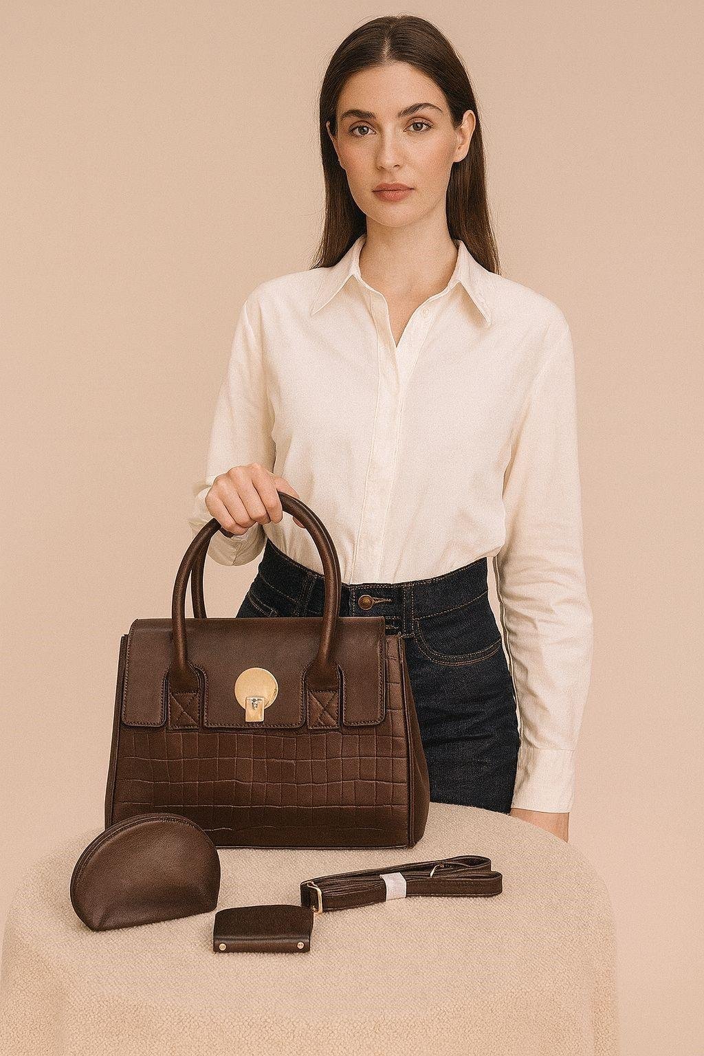 Designed with dual top handles, giving it a refined, ladylike carry style
